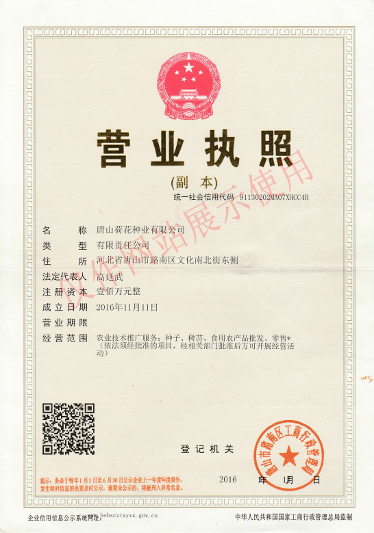 唐山荷花種業(yè)有限公司始創(chuàng)于1984年,一直秉承“科技為先,誠信為本”的發(fā)展指導(dǎo)戰(zhàn)略,注冊商標(biāo)“荷花”牌,經(jīng)過三十多年的發(fā)展,建立了從親本選育、試驗示范、生產(chǎn)檢驗、精選加工、推廣銷售及農(nóng)業(yè)技術(shù)咨詢一體化的經(jīng)營體系,目前擁有試驗基地、繁育基地、制種基地、及規(guī)模化種子冷貯藏庫,完善了由科研、檢驗、生產(chǎn)、銷售各個配套環(huán)節(jié)。荷花牌系列種子正是我們在堅持“誠信、品質(zhì)、開拓、創(chuàng)新”的企業(yè)精神下打造的種子品牌,如今,在全國已形成強勢品牌效應(yīng),是一個值得信賴與具有一定影響力的種子品牌,在全國廣大用戶中贏得了良好的口碑和信譽... ...